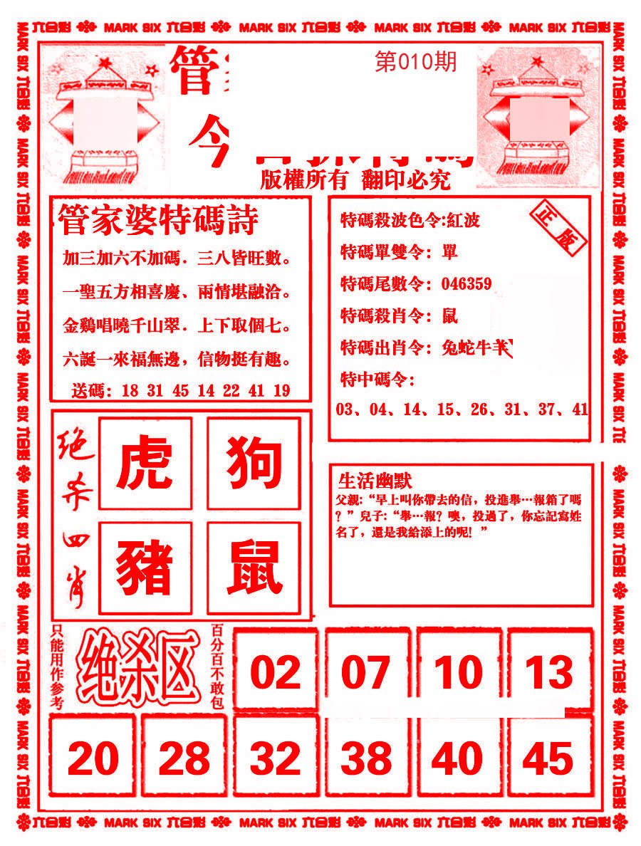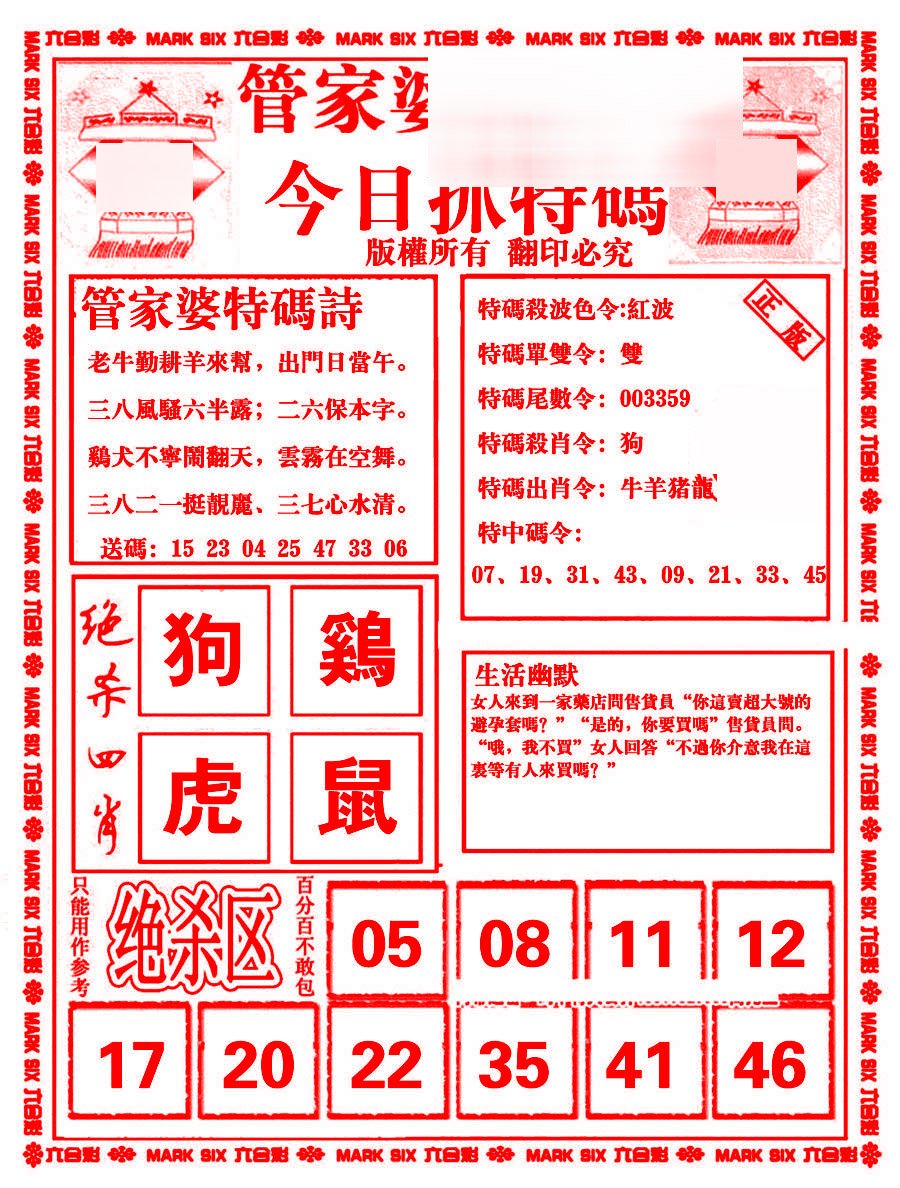 | 004期: ⑤肖 | 鼠狗羊蛇龙 | 猪07中 |