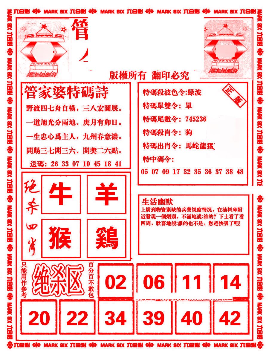 | 002期: ⑥肖 | 虎猪鸡龙鼠猴 | 鼠42中 |